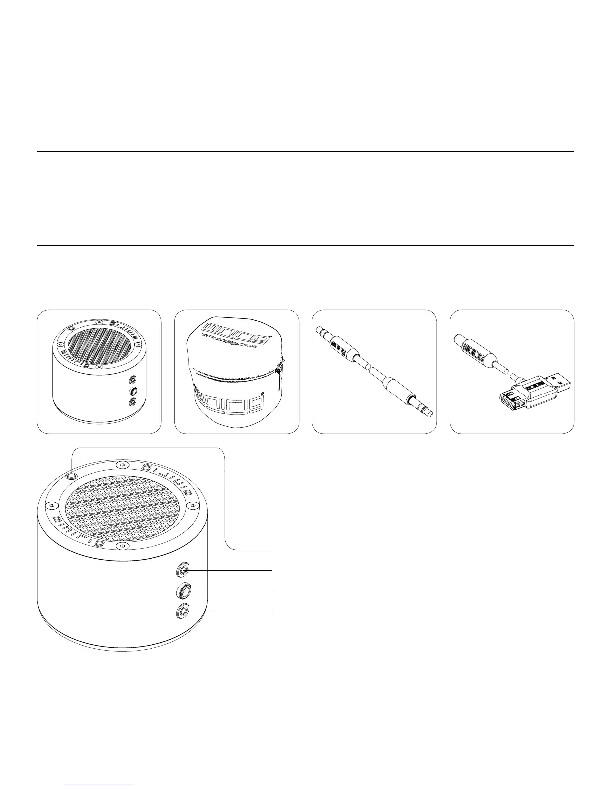 1. Minirig speaker 2. Zip case for the Minirig 3. aux audio cable 3.5mm 4. Barrel to USB power