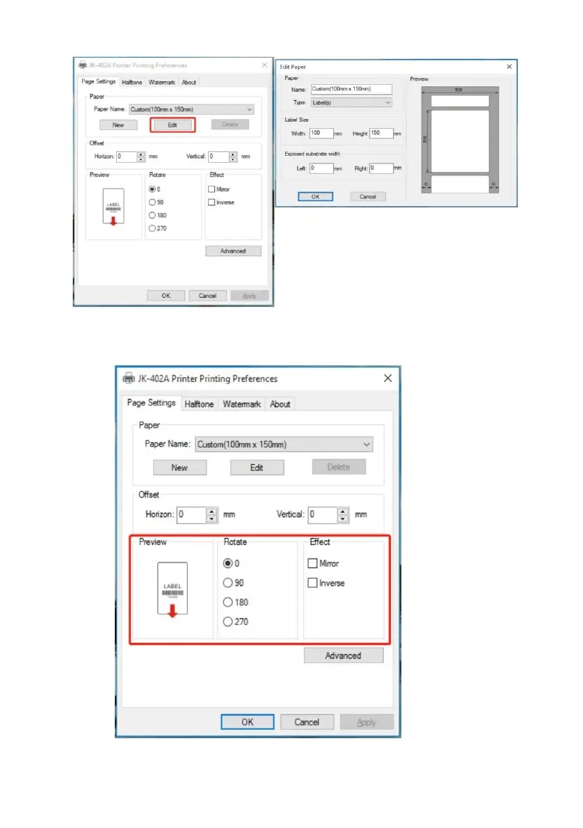 MINJCODE JK-402A - Label Printing Adjustments; Editing Label Size and Orientation