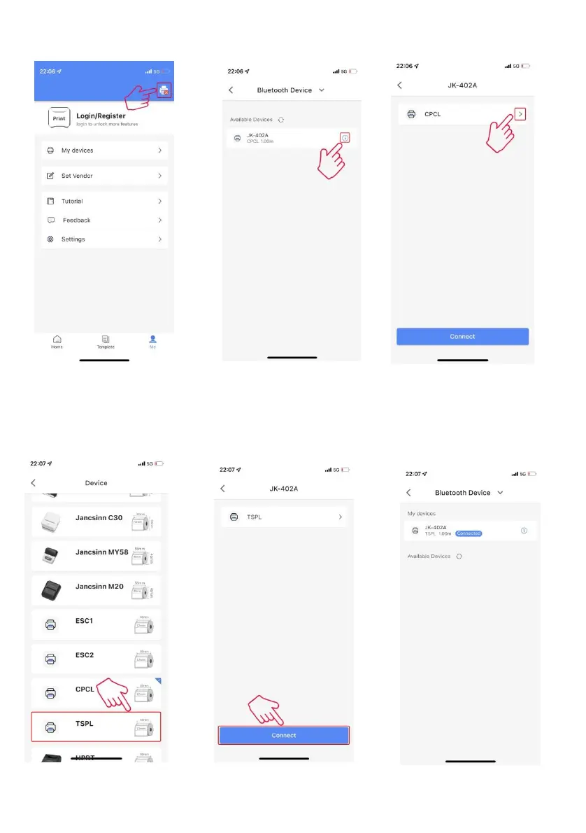 MINJCODE JK-402A - Android Bluetooth Printer Connection; Connect Android Device via TSPL