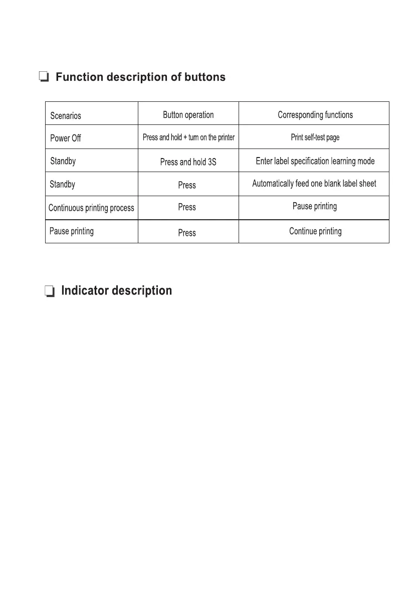 MINJCODE JK-402A - Printer Controls and Indicators; Button Functions; Indicator Status Meanings