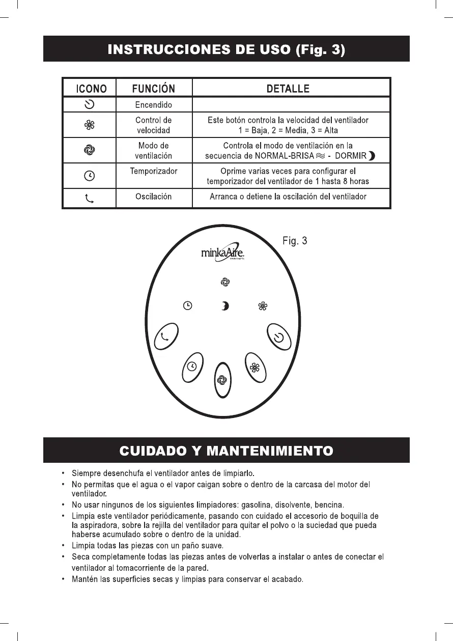 Pulse esta tecla para encender el ventilador de encendido / apagado