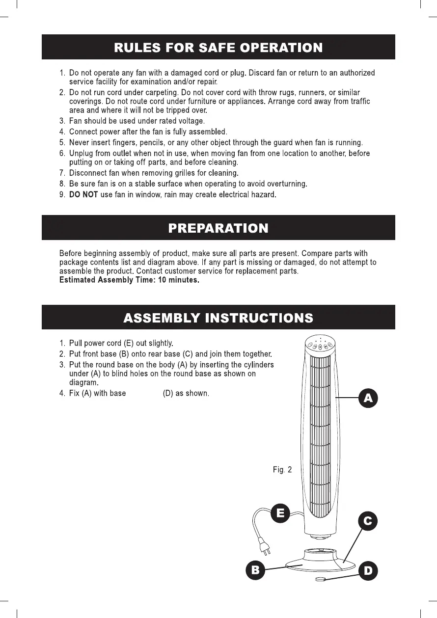 minkaAire F301 - RULES FOR SAFE OPERATION; PREPARATION; ASSEMBLY INSTRUCTIONS