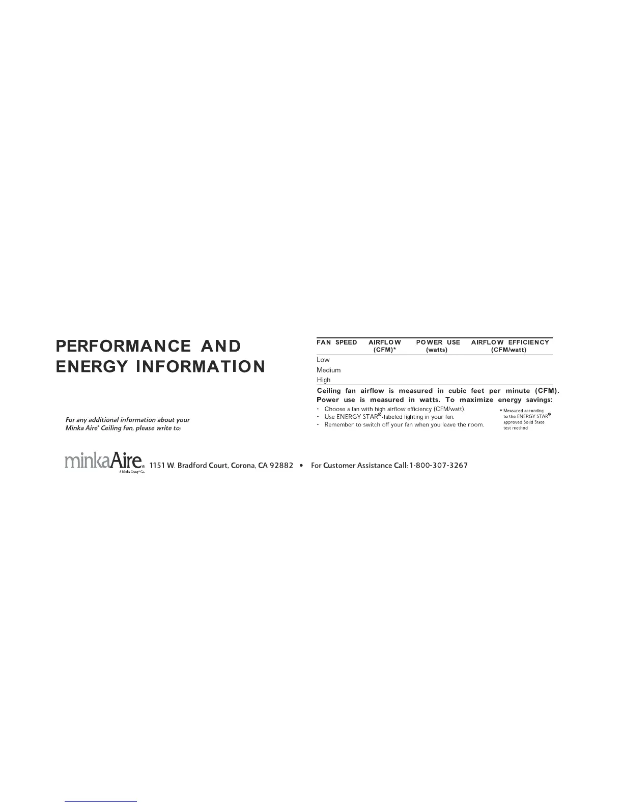 minkaAire Light Wave - Performance and Energy Information