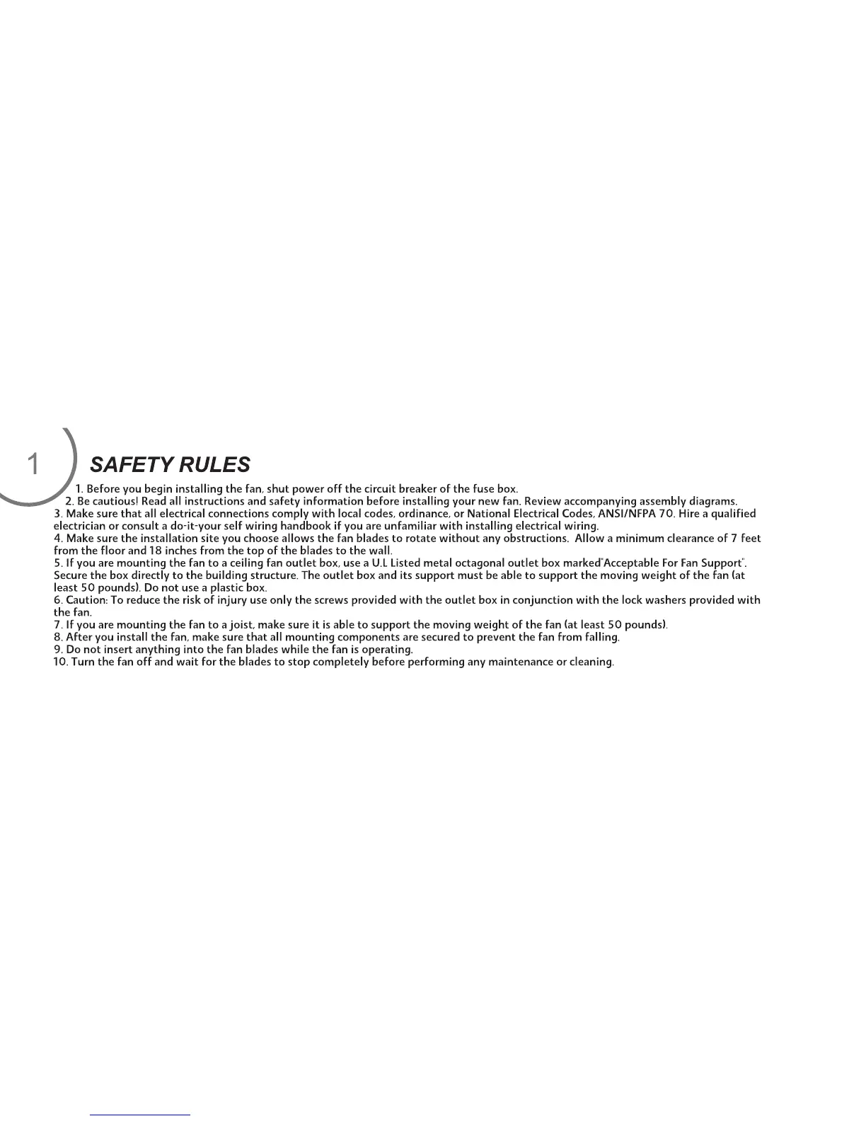 minkaAire ROTO - Safety Rules; General Installation Safety