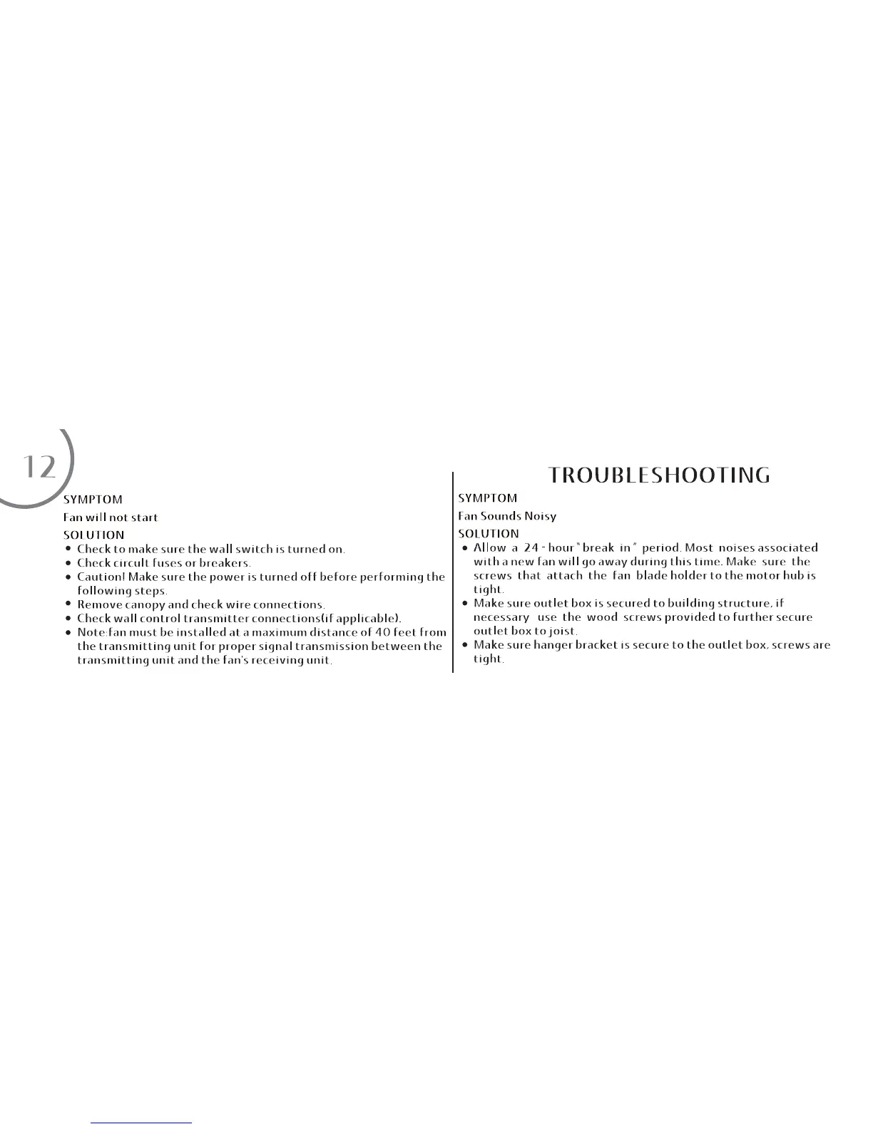 minkaAire Xtreme - Troubleshooting; Fan Will Not Start; Fan Sounds Noisy