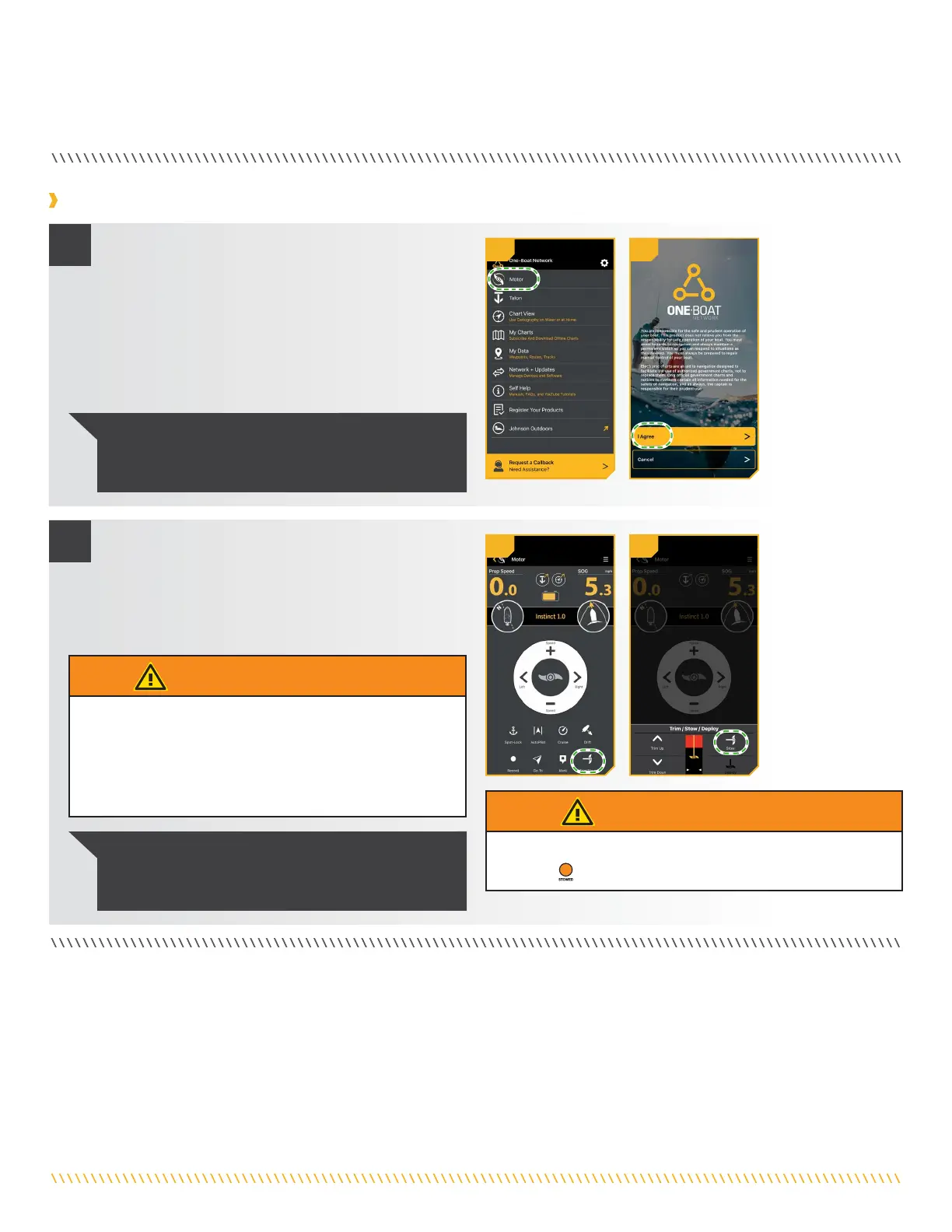e. Tap Stow to automatically stow the motor. The Prop