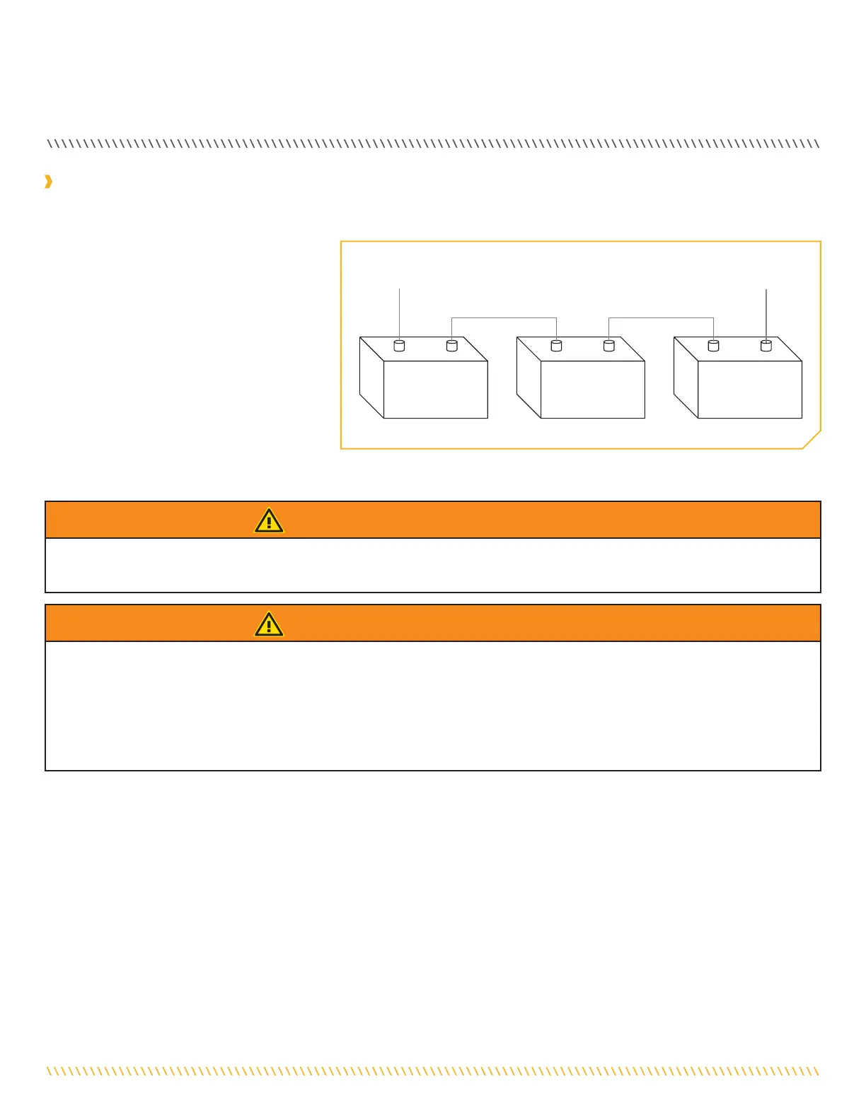 Trois batteries de 12 volts sont nécessaires. Les batteries doivent être branchées en série, uniquement tel qu’illustré dans le schéma