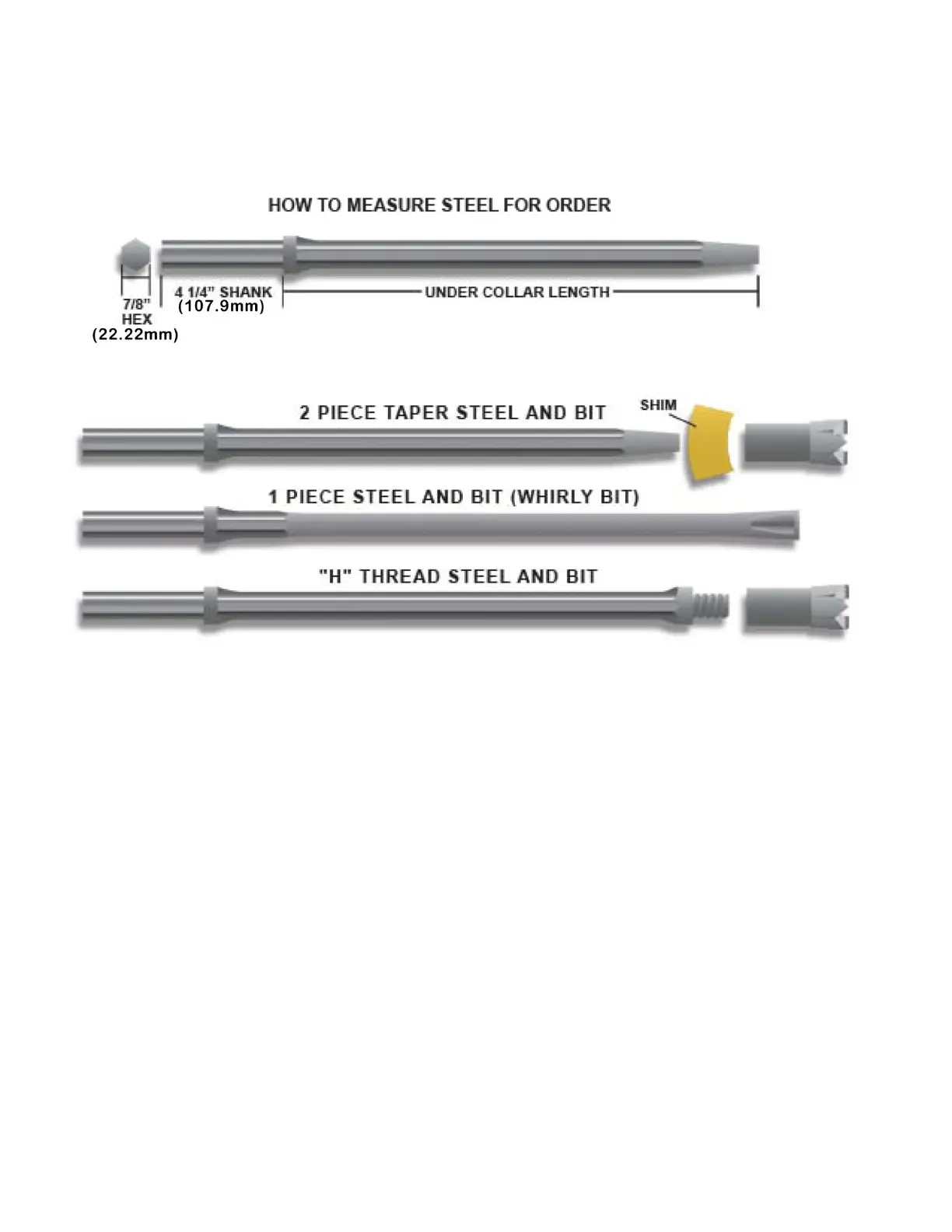 2. 2 1/2” (63.5mm) diameter maximum bit for pneumatic drills.