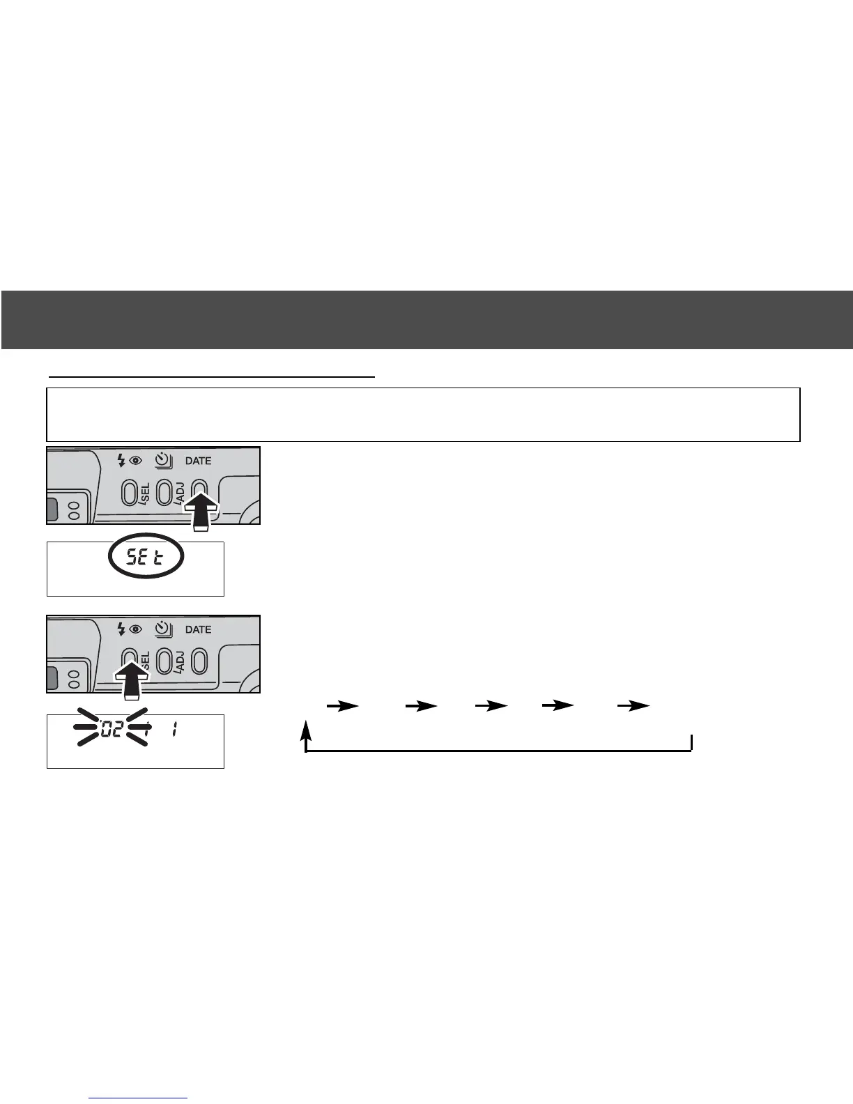 1.Turn the camera on. Press the date button