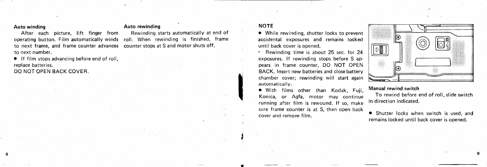 Minolta AF-Tele - Film Handling and Operation; Film Loading Procedure; Automatic Film Winding; Automatic Film Rewinding
