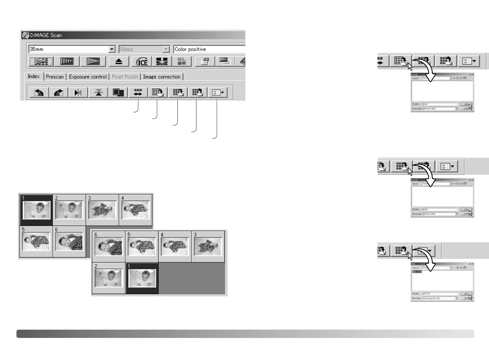 the roll. When scanning film strips, the order of the index thumbnails can be reversed