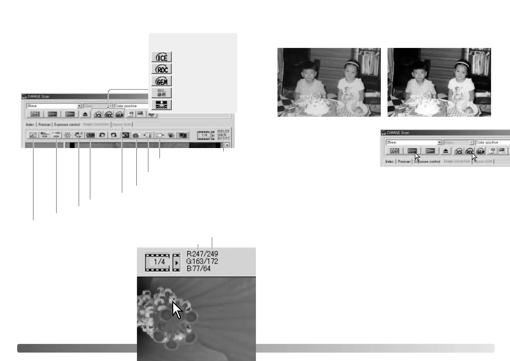 Digital ROC (Reconstruction of Color) can restore the faded color of old film, see page