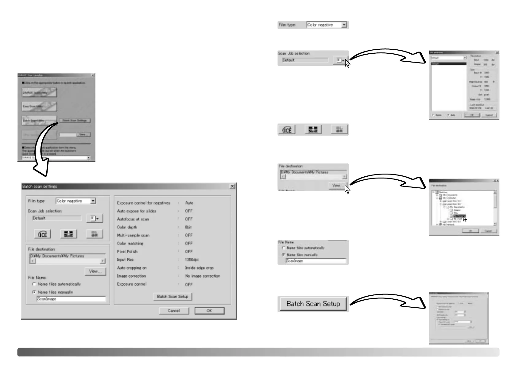 automatically scans, processes, and saves all the images in a film holder. The Batch