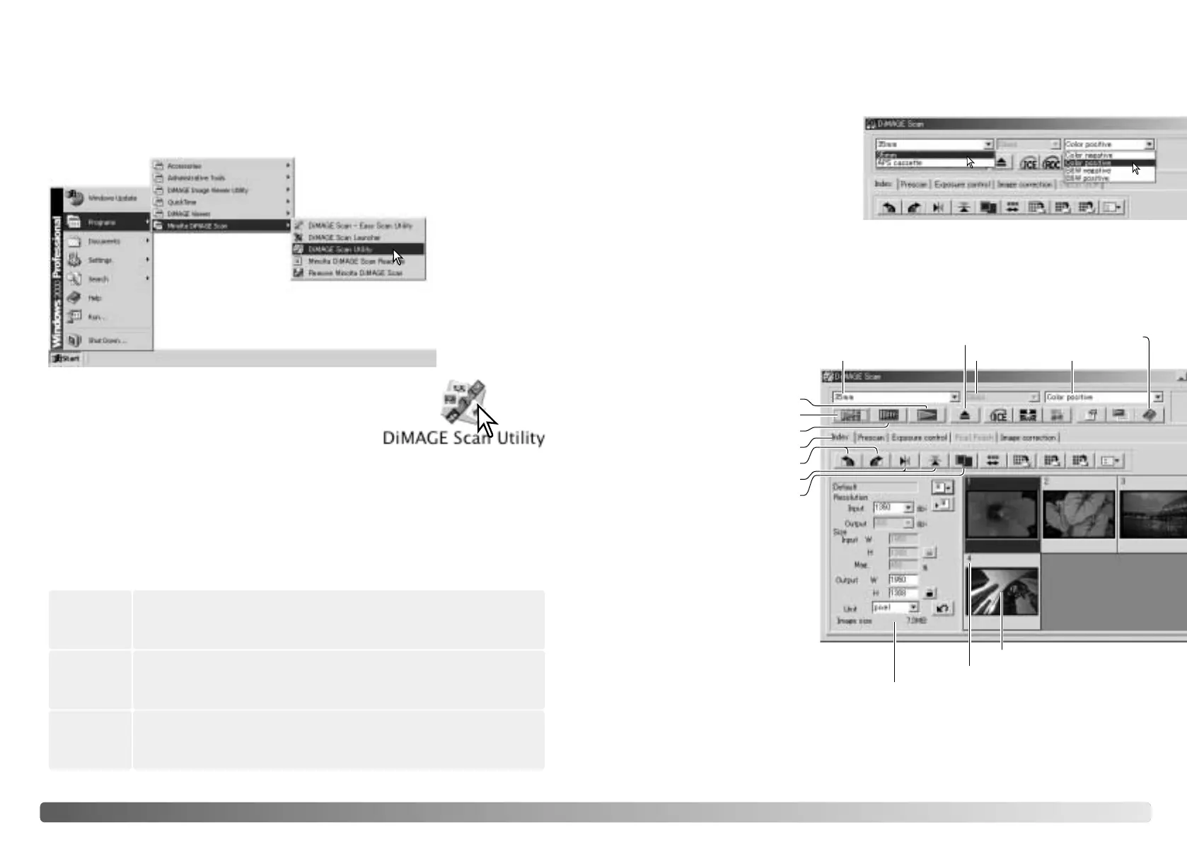 Select DiMAGE Scan Utility from the Minolta DiMAGE Scan folder