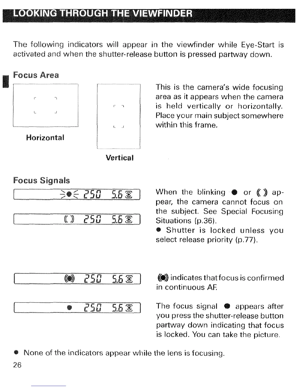 Minolta Dynax 700si - Looking through the Viewfinder; Focus Area; Focus Signals