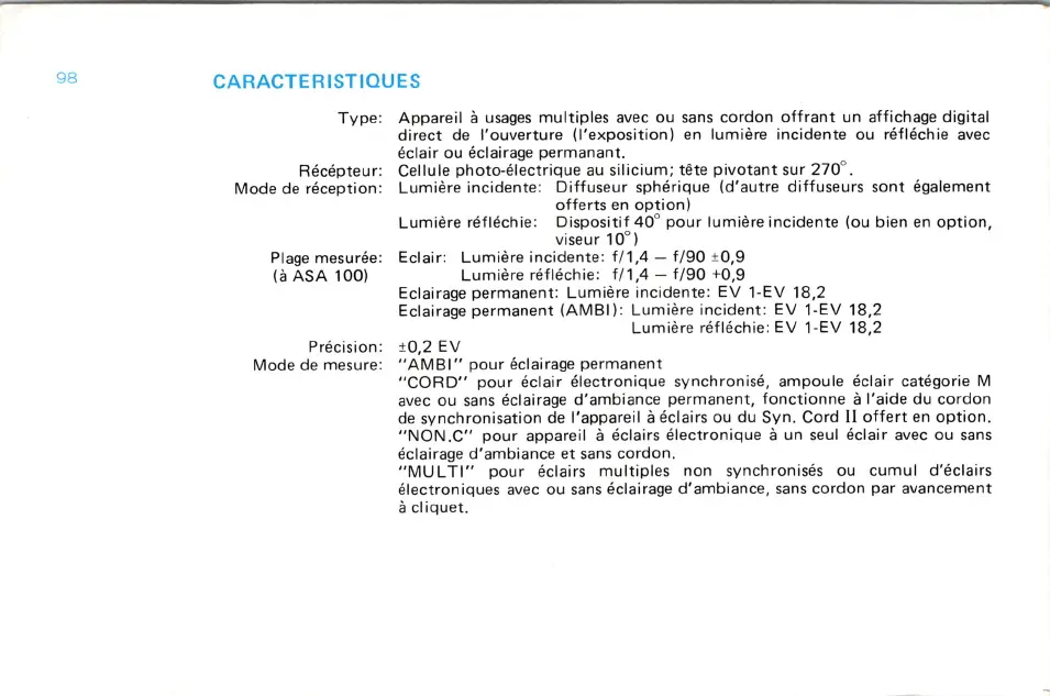 Minolta FLASH METER III - Caracteristiques