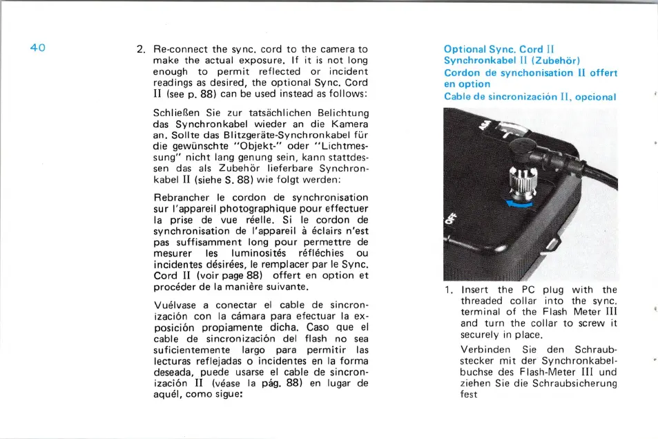 Minolta FLASH METER III - Cordon de Synchronisation II Offert en Option