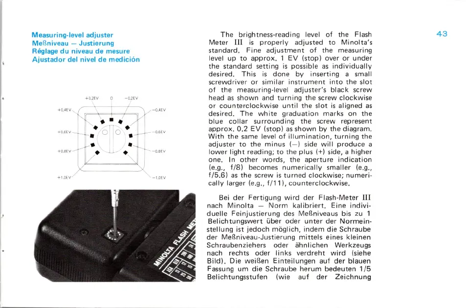 Minolta FLASH METER III - Reglage du Niveau de Mesure