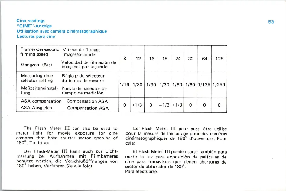 Minolta FLASH METER III - Utilisation Avec Camera Cinematographique