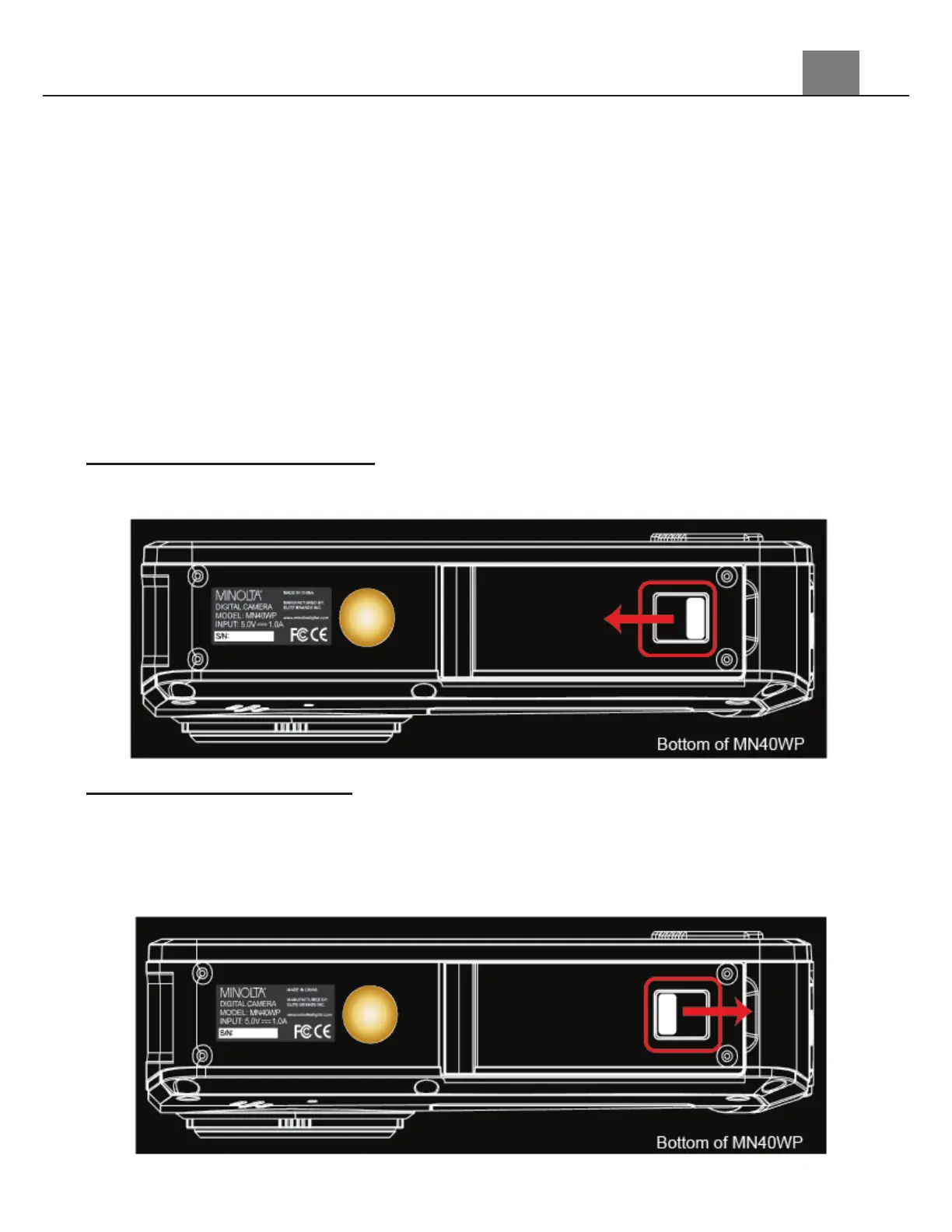 x Make sure that there are no debris inside the battery-chamber or memory card slot.