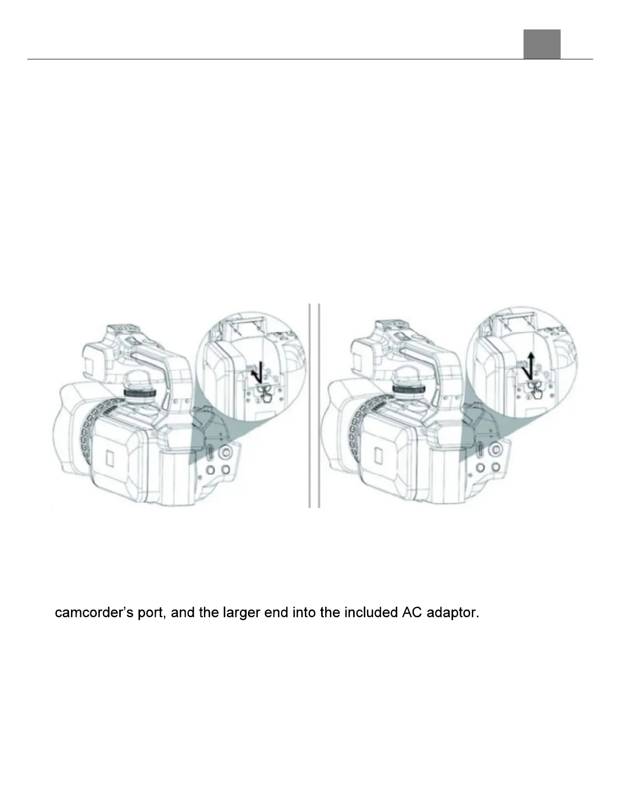 Insert the lithium-ion battery into the battery slot at the rear of the camcorder