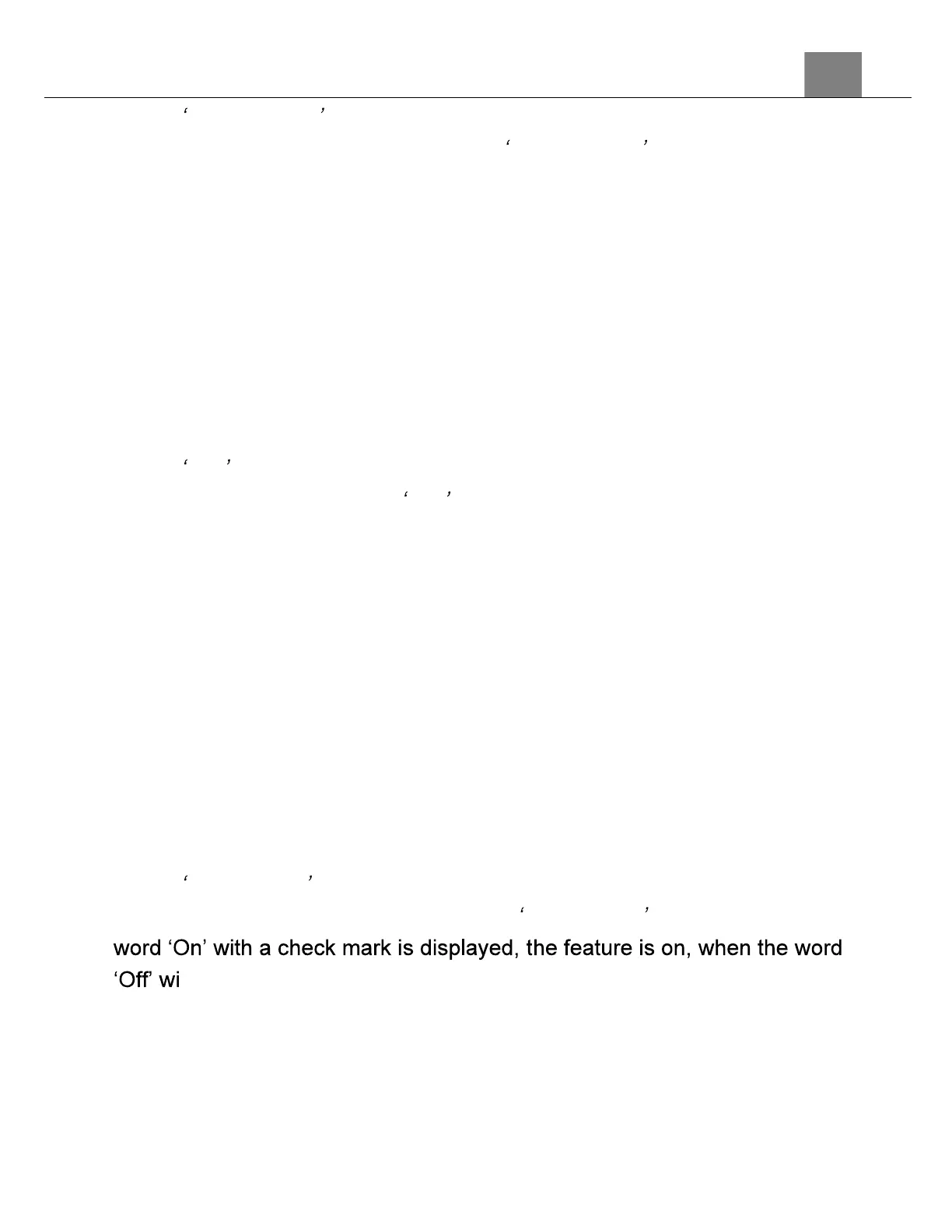 thout a check mark is displayed, the feature is off.