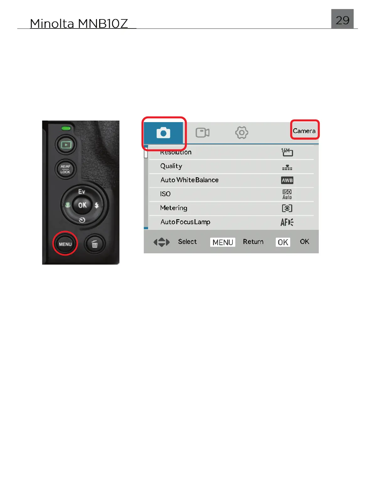 navigate. Pressing the LEFT and RIGHT buttons will switch the menu from Camera