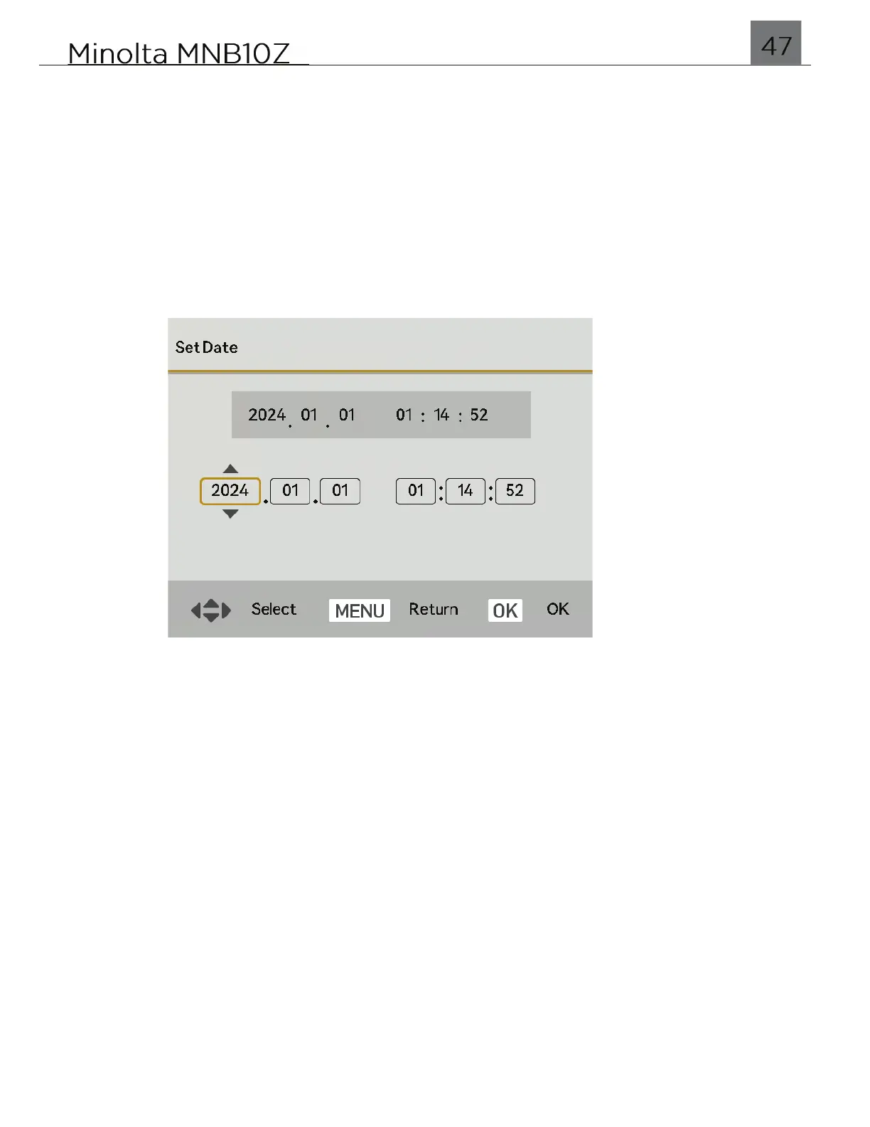 Select ‘Set Date’ and press the OK button to enter the submenu.