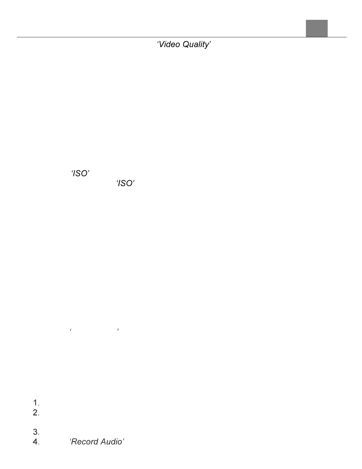 modes on and off. If this setting is set to off, any videos recorded in video