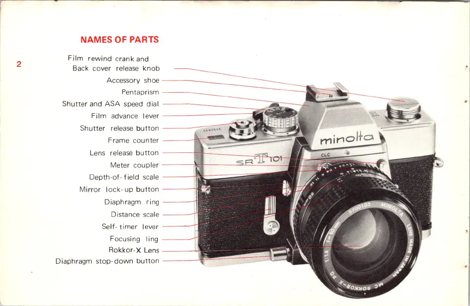 Minolta SR T101 - Names of Parts