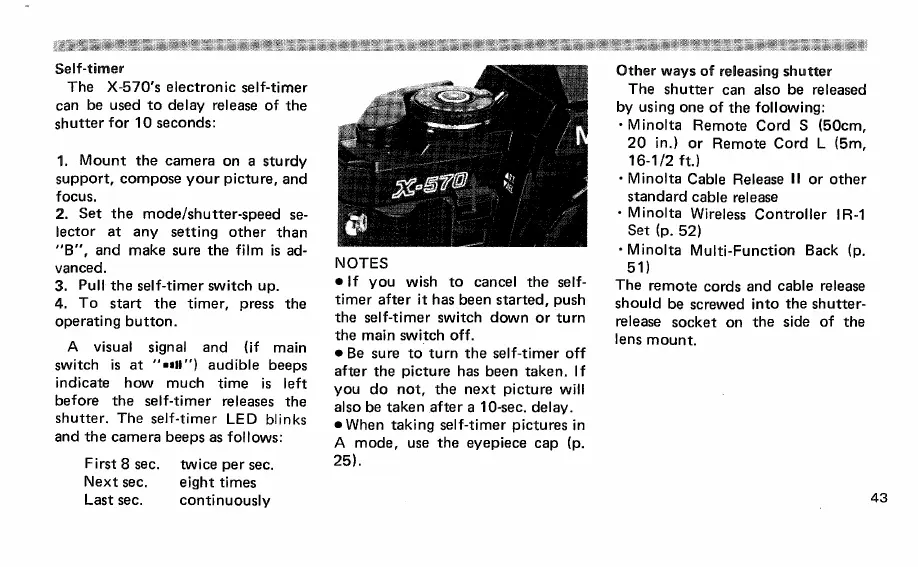 Minolta X-570 - Self-Timer; Other Ways of Releasing Shutter