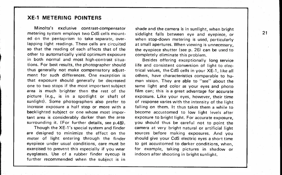 Minolta XE-1 - Viewfinder Information