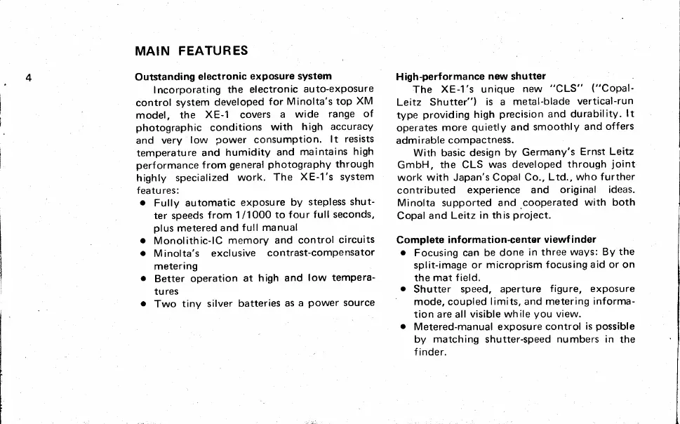 Minolta XE-1 - Main Features of the Minolta XE-1