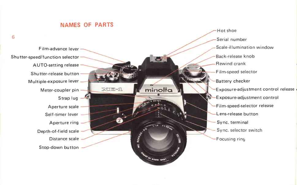 Minolta XE-1 - Names of Parts on the Minolta XE-1