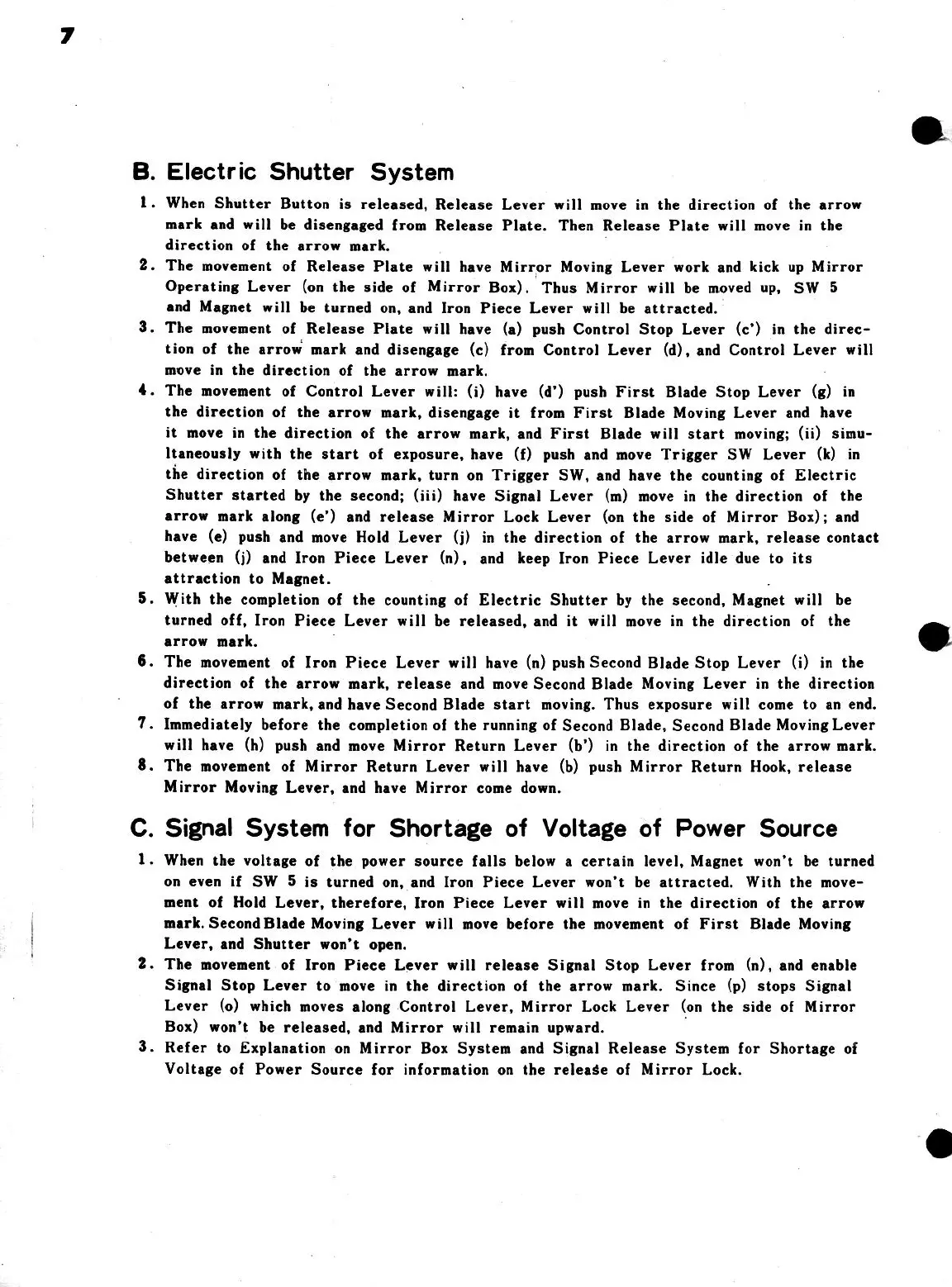 Minolta XE - B. Electric Shutter System; C. Signal System for Shortage of Voltage of Power Source