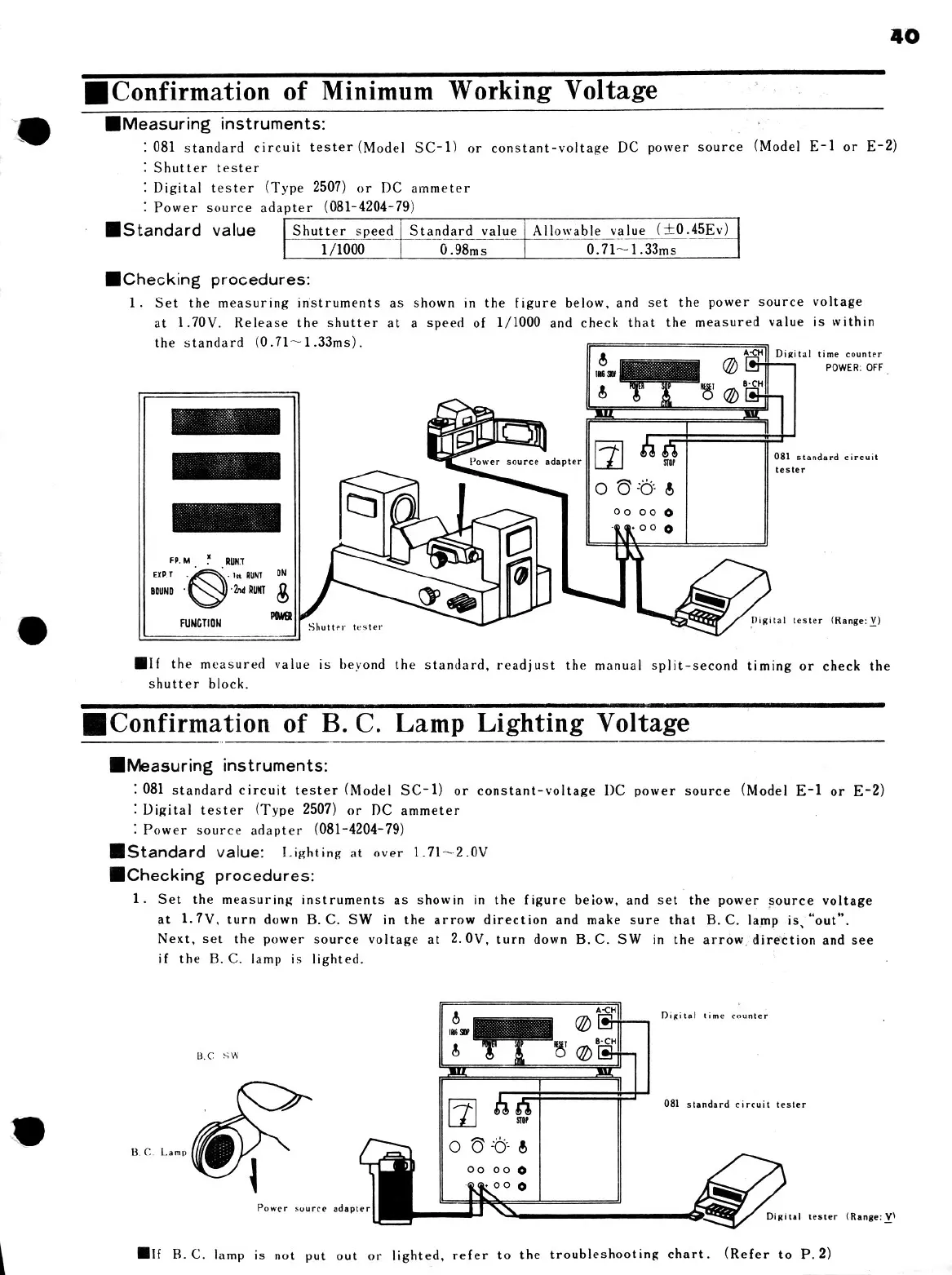 Minolta XE - Confirmation of Minimum Working Voltage; Confirmation of B.C. Lamp Lighting Voltage