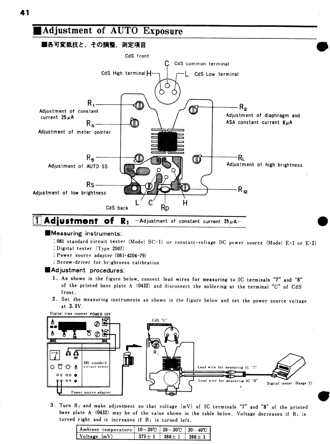 Minolta XE - Adjustment of AUTO Exposure; 1. Adjustment of Ri; 2. Adjustment of R2; 3. Adjustment of R3