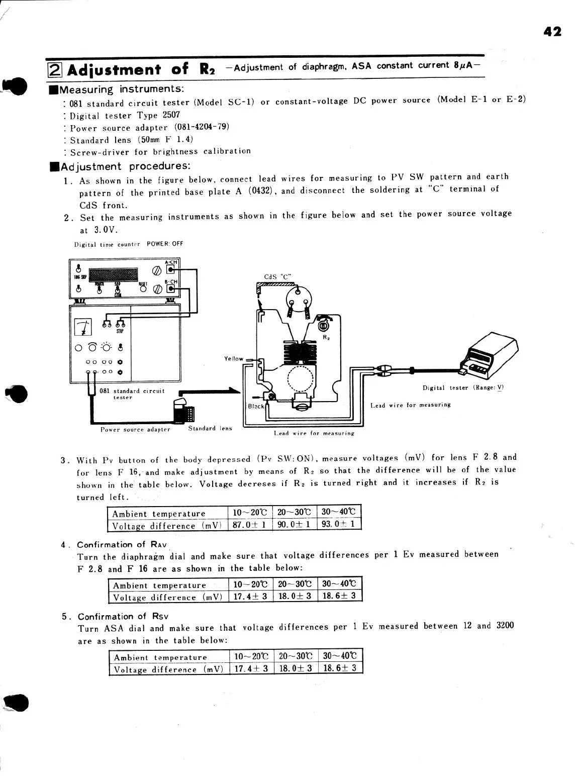 Minolta XE - Adjustment of R2; 4. Confirmation of Rav; 5. Confirmation of Rsv