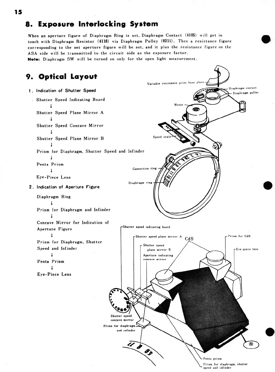 Minolta XE - 8. Exposure Interlocking System; 9. Optical Layout