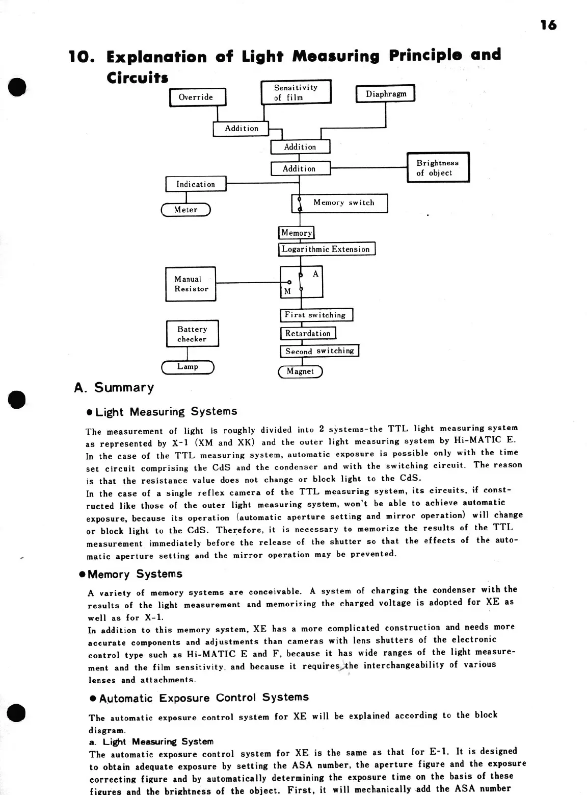 Minolta XE - 10. Explanation of Light Measuring Principle and Circuits; A. Summary; Light Measuring Systems; Memory Systems