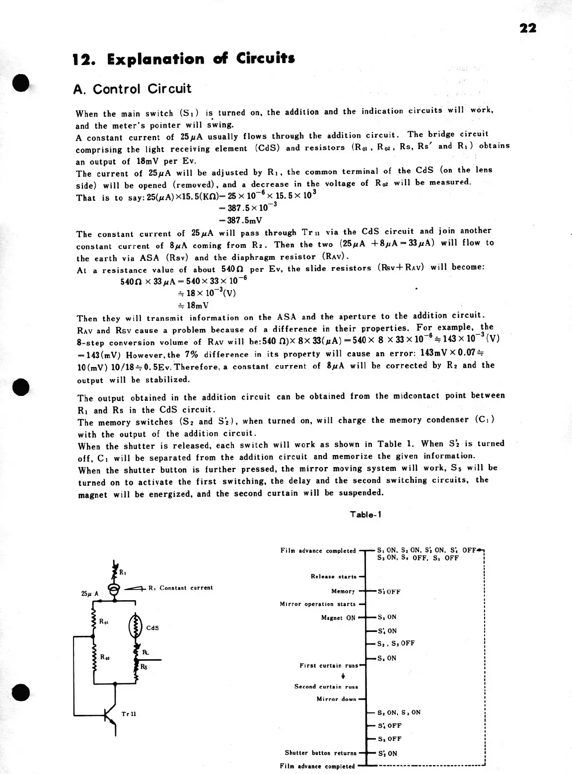Minolta XE - 12. Explanation of Circuits; A. Control Circuit