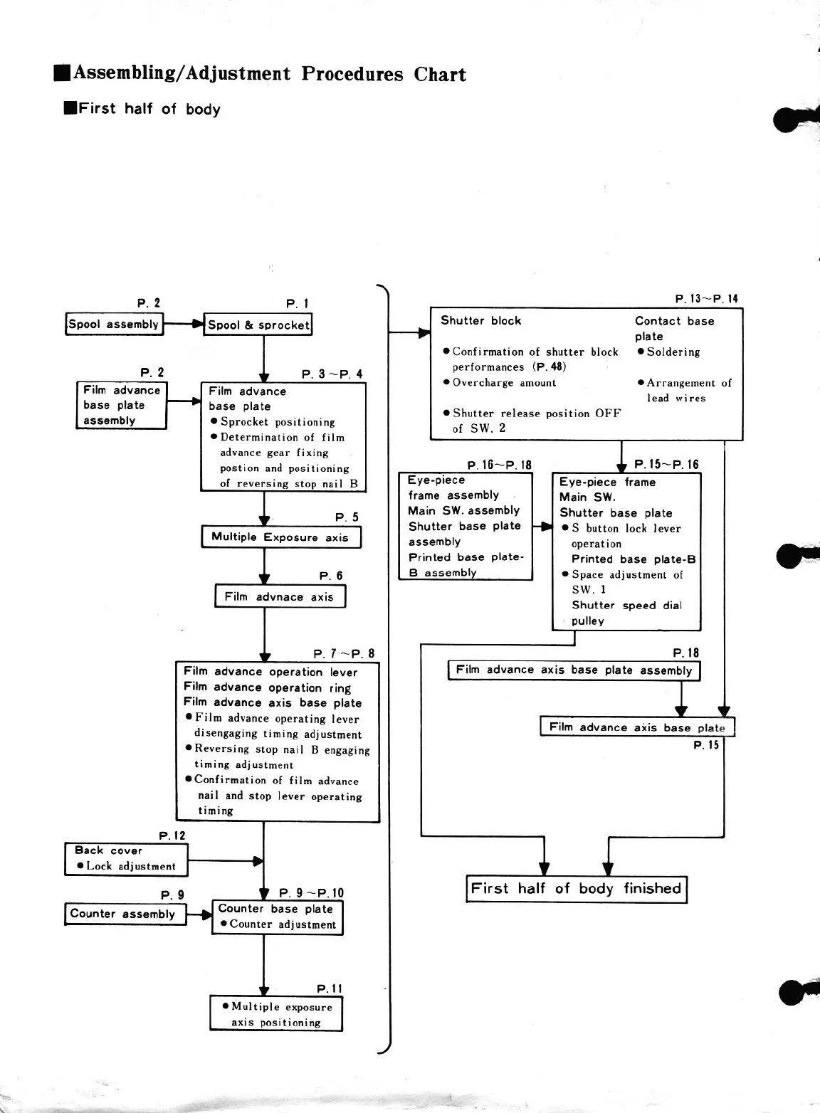 Minolta XE - Assembling;Adjustment Procedures Chart; First half of body