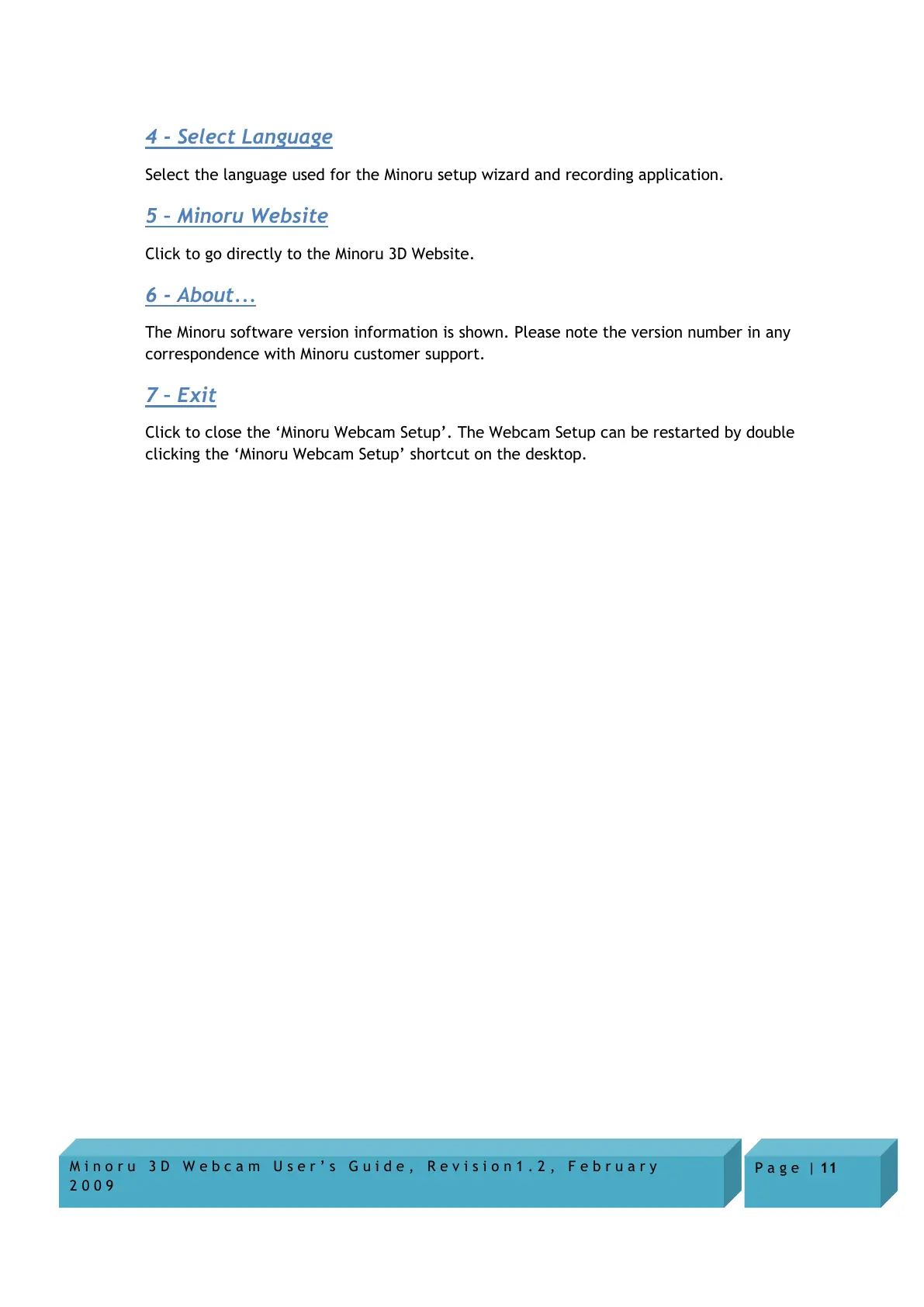 Click to close the ‘Minoru Webcam Setup’. The Webcam Setup can be restarted by double