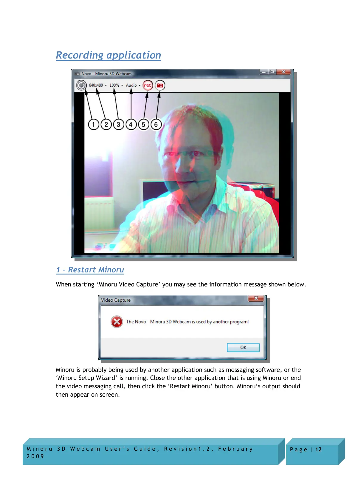 the video messaging call, then click the Restart Minoru button. Minorus output should