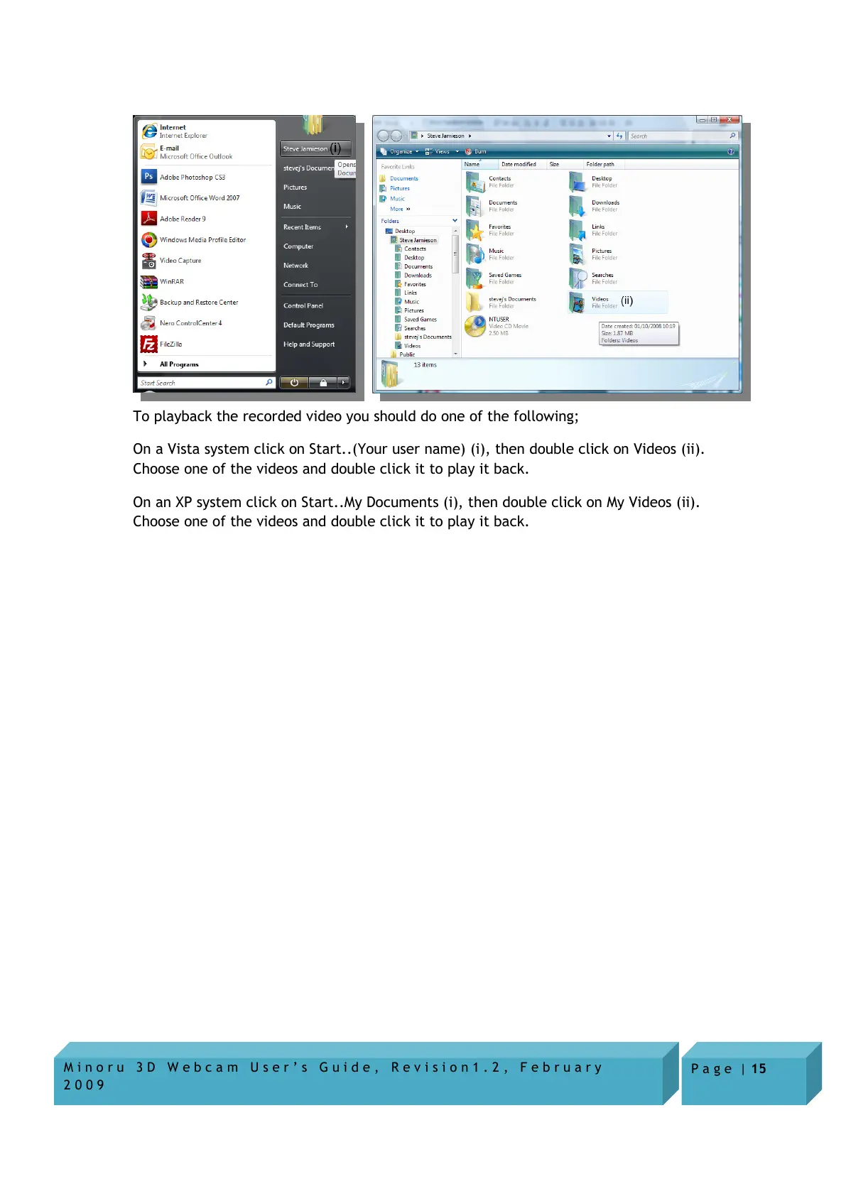 On a Vista system click on Start..(Your user name) (i), then double click on Videos (ii).