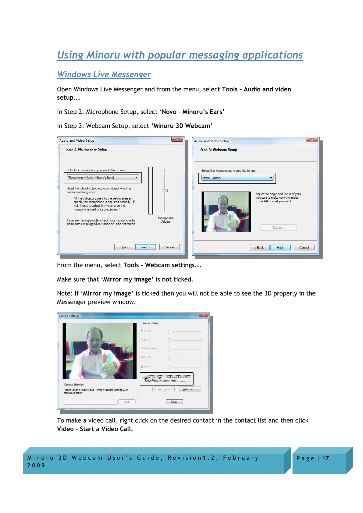 Note: If ‘Mirror my image’ is ticked then you will not be able to see the 3D properly in the