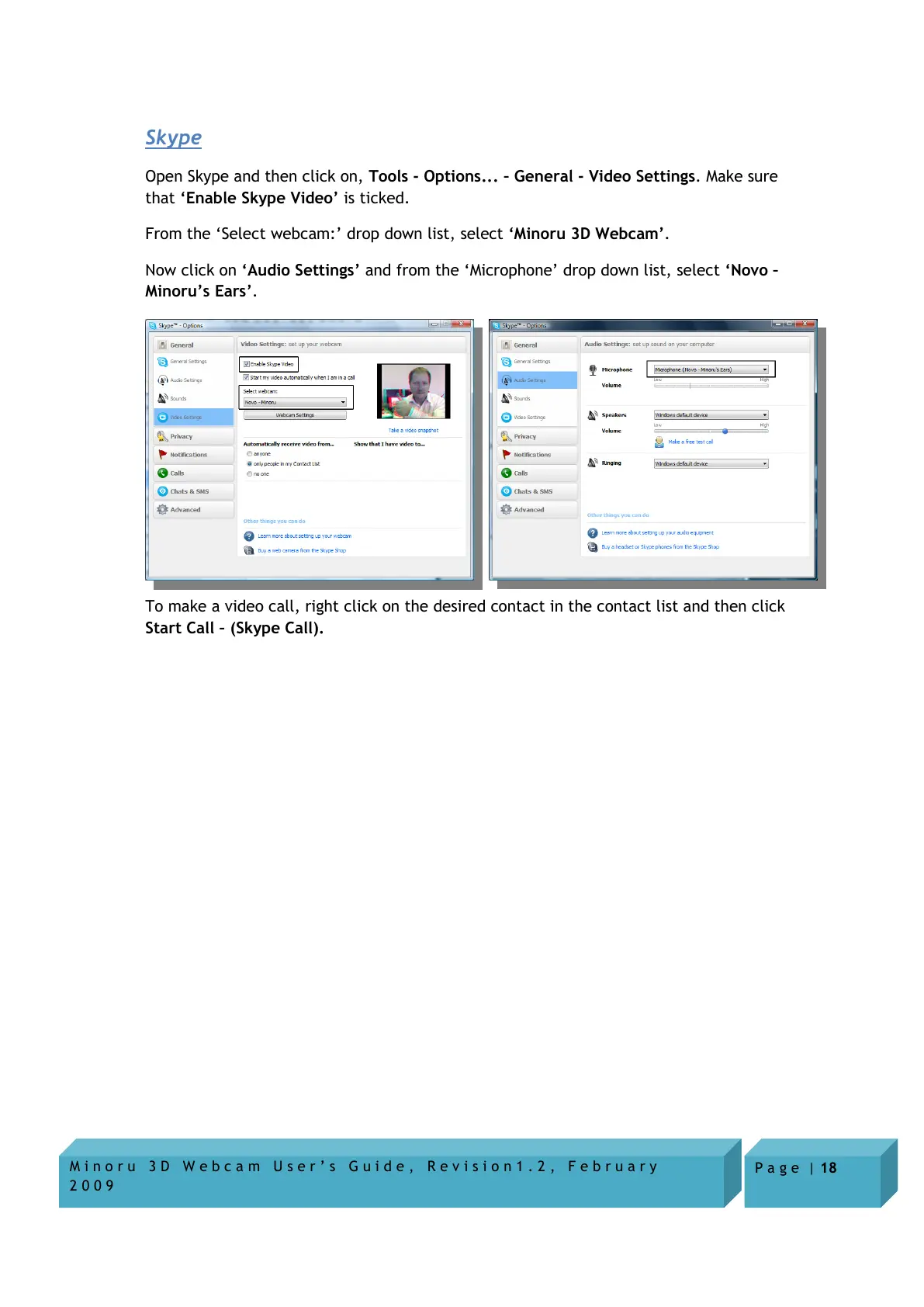 From the ‘Select webcam:’ drop down list, select ‘Minoru 3D Webcam’.