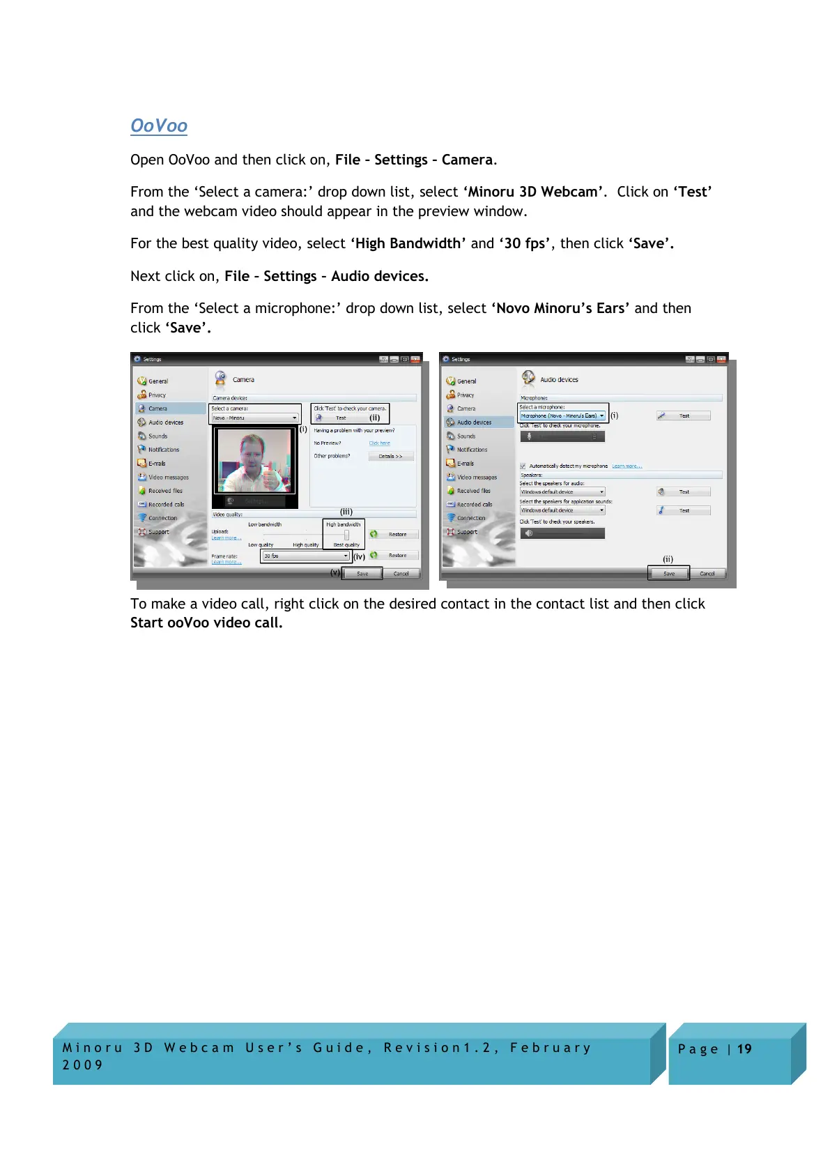 Open OoVoo and then click on, File – Settings – Camera.