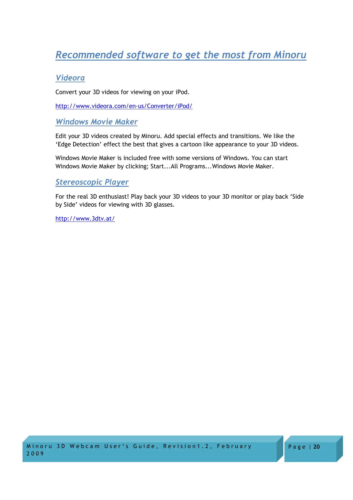 Recommended software to get the most from Minoru