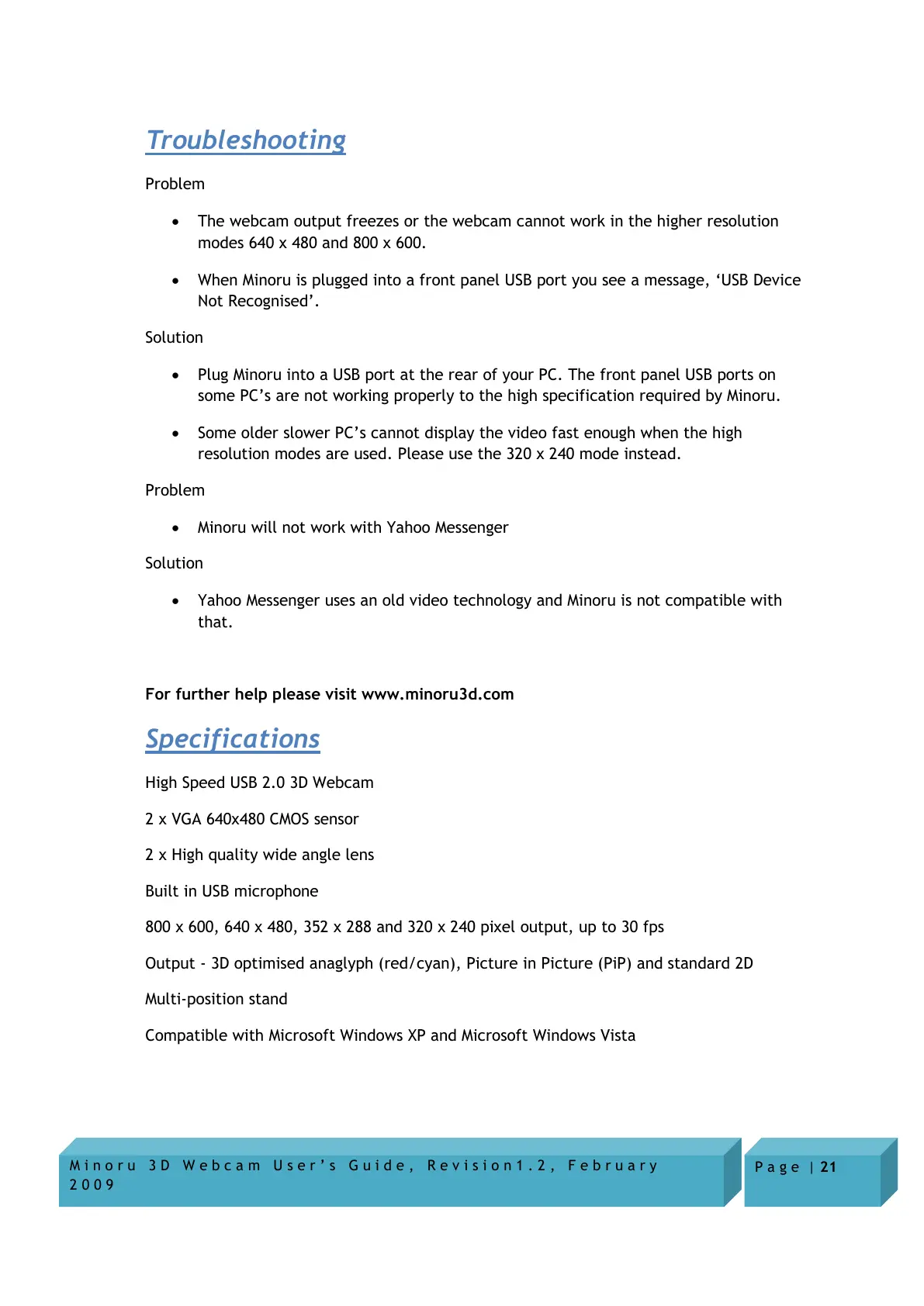• Yahoo Messenger uses an old video technology and Minoru is not compatible with